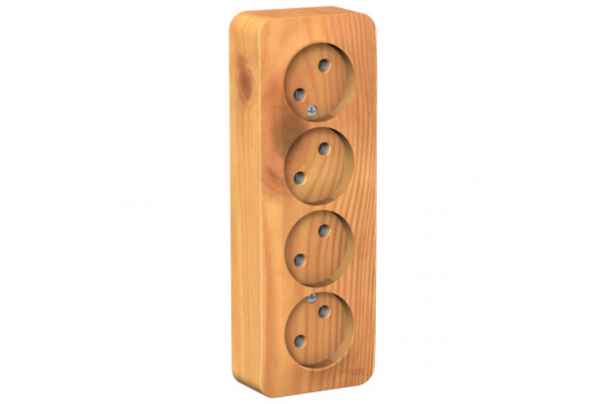 Розетка четырехместная без заземления без шторок Schneider Electric Blanca BLNRA000415, ИЗОЛ.ПЛ., Ясень