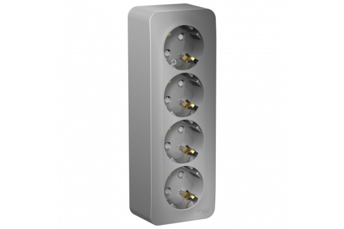 Розетка четырехместная с заземлением со шторками Schneider Electric Blanca BLNRA011413, ИЗОЛ.ПЛ., Алюминий