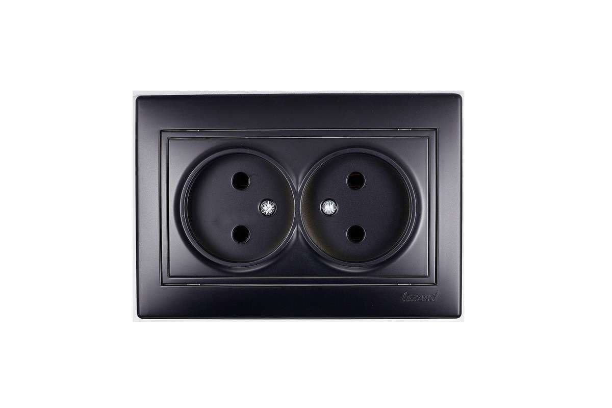Розетка двойная б/з керамика черный бархат со вставкой MIRA 701-4242-128