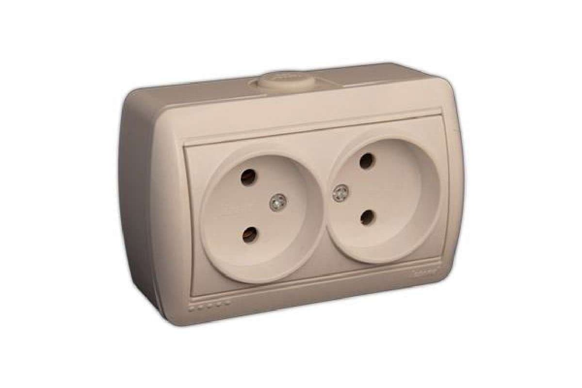 Розетка двойная б/з закрытый корпус керамика крем NATA 710-0300-128