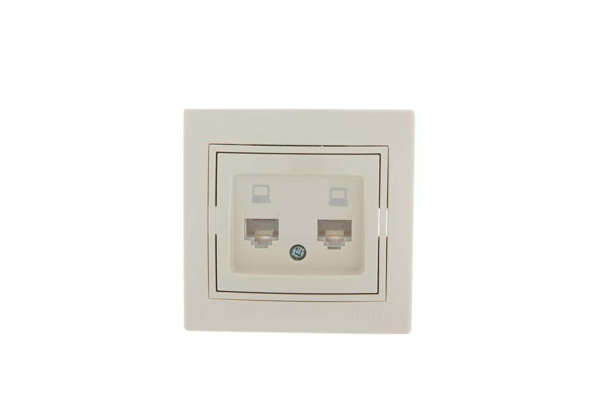 Розетка компьютерная двойная крем со вставкой MIRA 701-0303-141