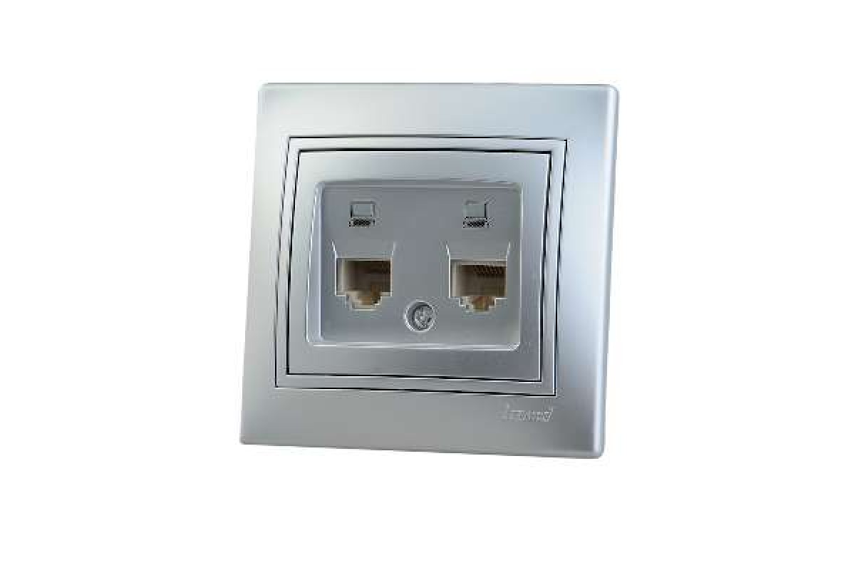 Розетка компьютерная двойная метал серый со вставкой MIRA 701-1010-141