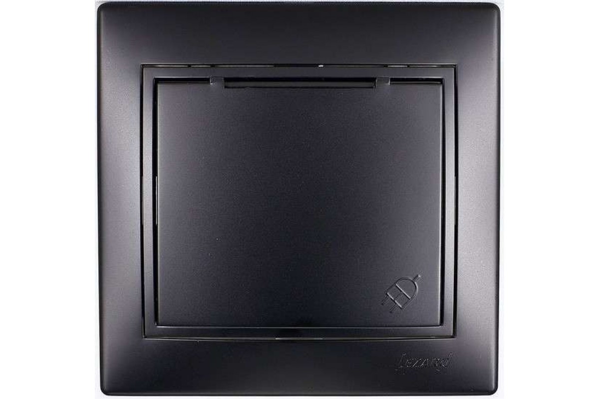 Розетка с/з с крышкой керамика черный бархат со вставкой MIRA 701-4242-123