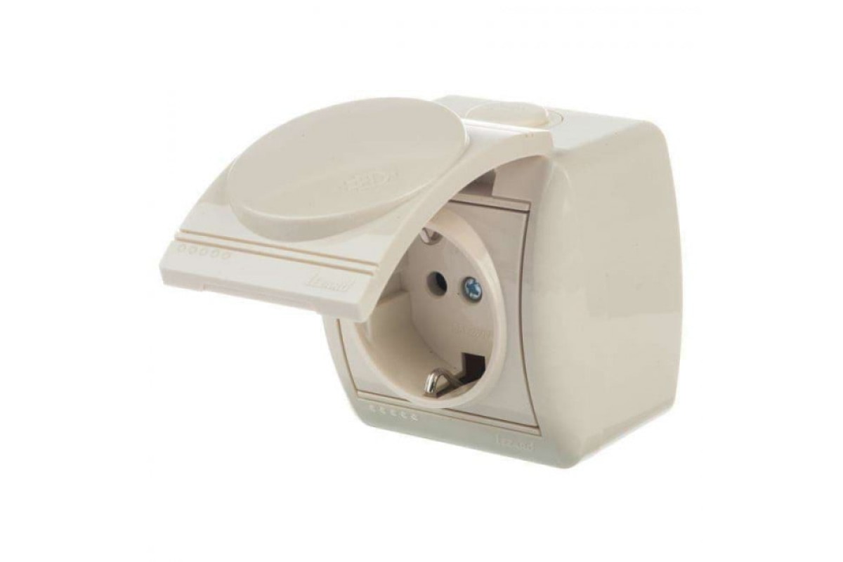 Розетка с/з с крышкой керамика крем NATA 710-0300-123