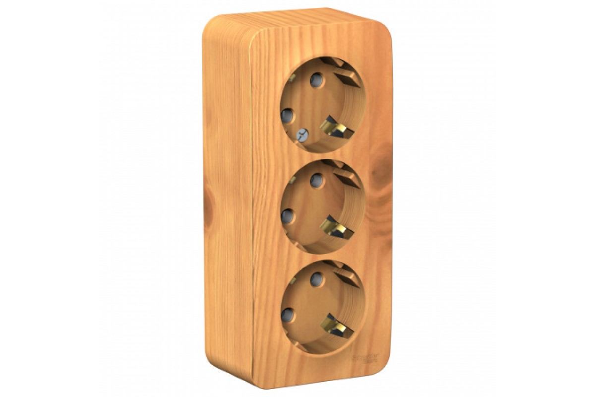 Розетка трехместная с заземлением без шторок Schneider Electric Blanca BLNRA010315, ИЗОЛ.ПЛ., Ясень