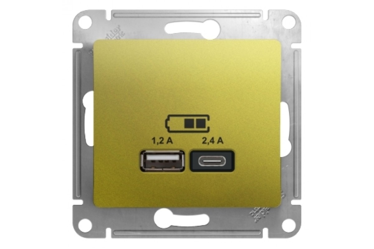 USB розетка A+С, 5В/2,4 А, 2х5В/1,2 А, Schneider Electric Glossa, GSL001039, Фисташковый