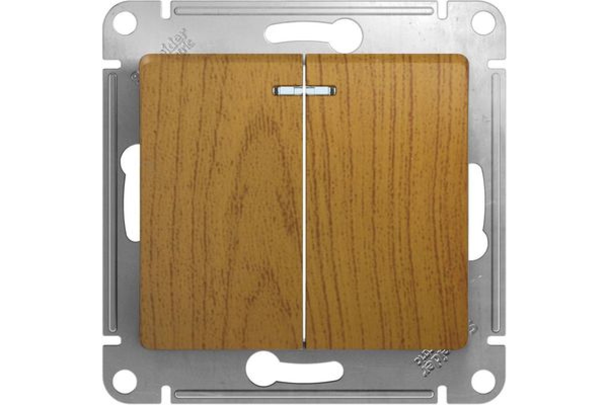 Выключатель 2-клавишный с индикацией Schneider Electric Glossa, GSL000553, Дуб
